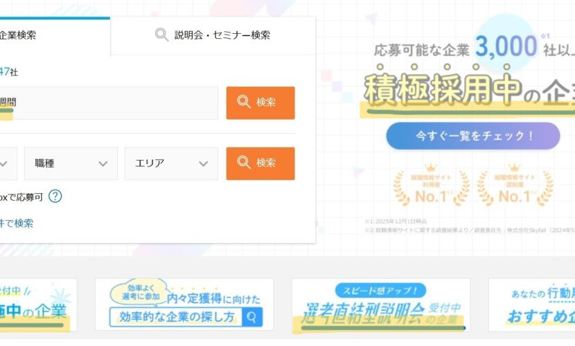 ようなバナーに追加されます!⇒冬採用実施中企業 「内定まで最短2週間」はフリーワード検索を学生が