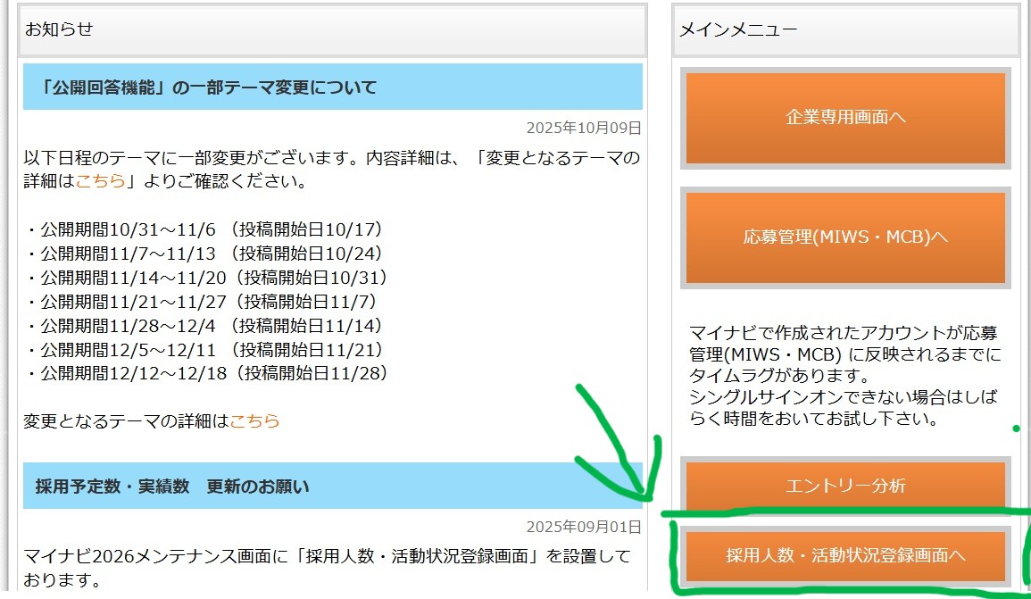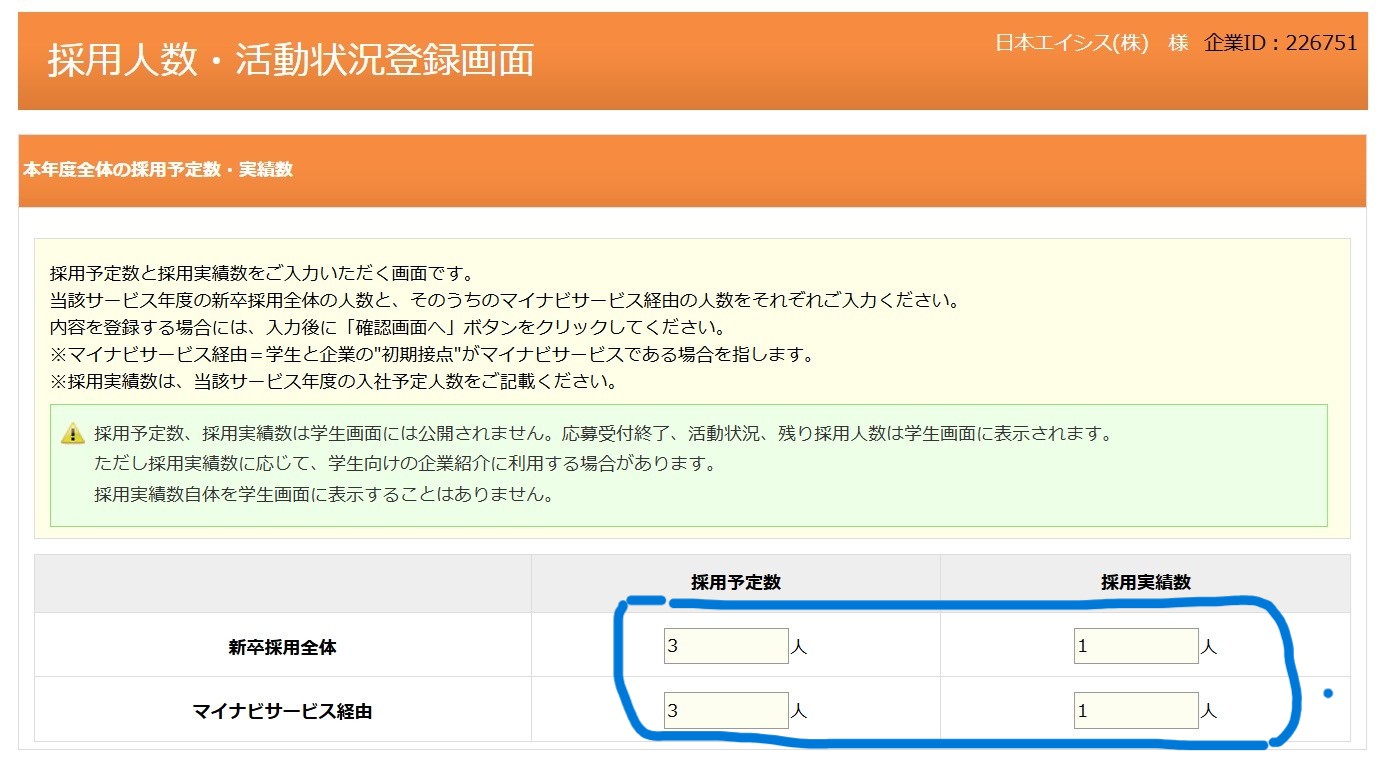 2⃣ マイナビ管理画面より、御社の現在の募集残り人数を入力すると